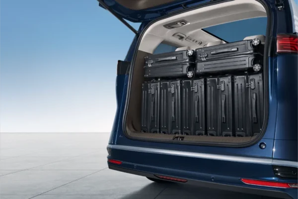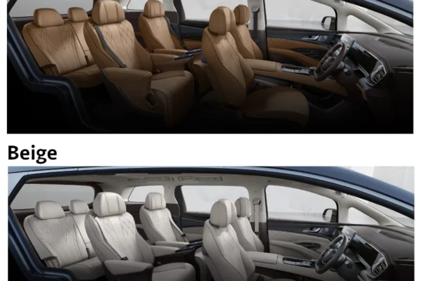 Denza D9 didesain sebagai kendaraan keluarga yang elegan dan lapang, menawarkan konfigurasi 7 kursi (2+2+3) yang nyaman. Dengan dimensi bodi yang besar, menjamin ruang kabin yang lega:
